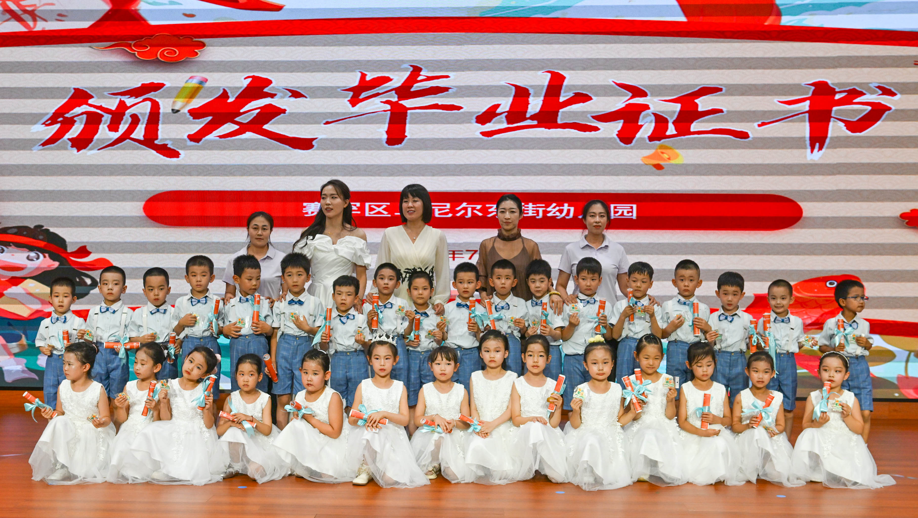 毕业典礼以“闪闪发光的小孩”为主题,师生们表演了自编自导的亲子舞蹈《纸飞机》、歌曲《这世界有那么多人》、舞台剧《最后一次点名》、配乐朗诵《爱的寄语》等精彩节目。活动中,幼儿园还为每位孩子颁发了毕业证书。随着合影环节的结束,毕业典礼圆满落幕,但属于孩子们的新故事,才刚刚开始。这场充满爱与感动的表演,将成为他们童年记忆里最温暖的注脚。