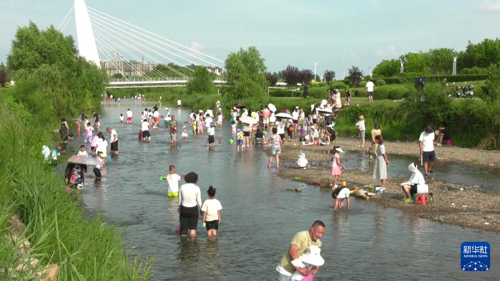 新华社呼和浩特7月10日电(记者恩浩)河道沿岸水花飞溅,孩子们踩着浅滩追逐嬉戏,家长们在遮阳天幕下闲谈纳凉……