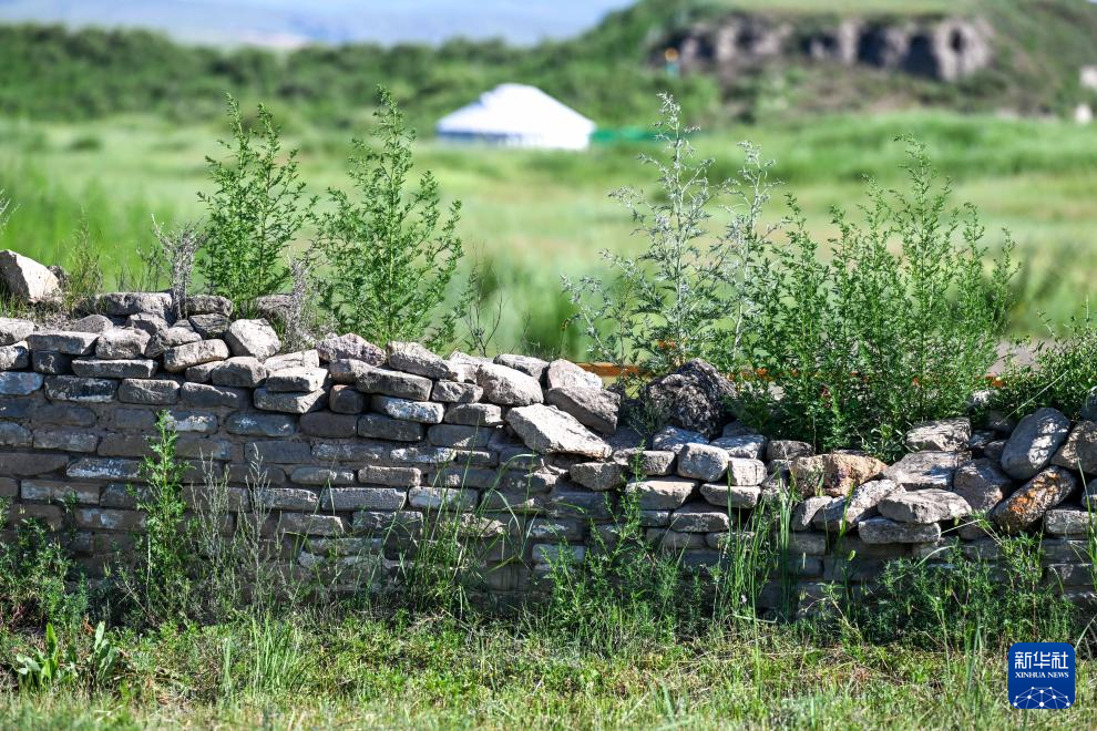 7月13日拍摄的内蒙古锡林郭勒盟正蓝旗金莲川草原上的元上都遗址一角。