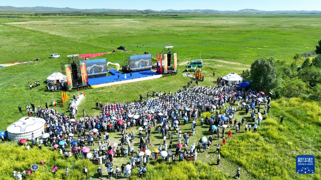 7月13日,2025正蓝旗金莲花旅游季开幕式在内蒙古锡林郭勒盟正蓝旗金莲川草原举行(无人机照片)。