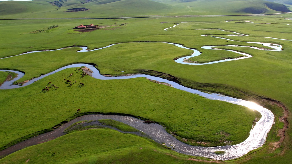乌拉盖九曲弯则更不必说,数百公里的内陆河在草原上恣意蜿蜒舒展,岸边红柳依依轻拂,散落的蒙古包如星子般缀在绿毯上,一派悠然。
