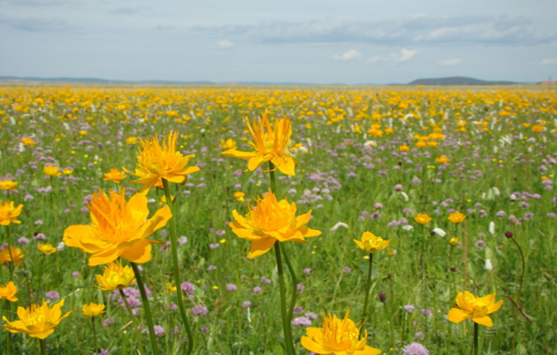 七八月的锡林郭勒,是大地最慷慨的馈赠——约二十万平方公里的土地上,草原铺展成柔软的碧毯,金莲花、芍药与格桑花缀满其间,像被顽童打翻的调色盘,却在天地间晕染得恰到好处。