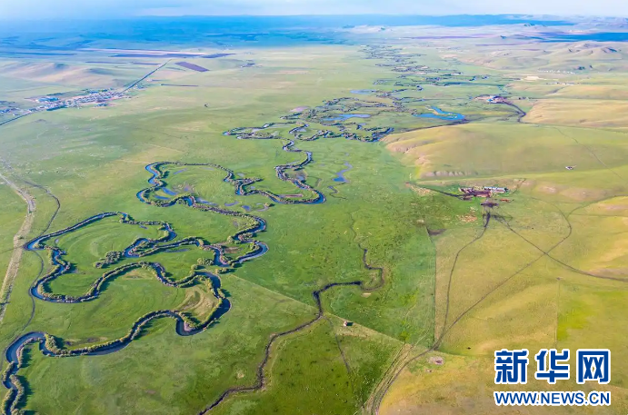 乌拉盖草原(航拍资料图)。新华社记者 彭源 摄