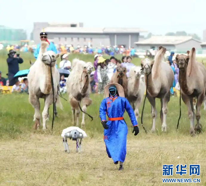 “马超”开幕现场,身着蒙古袍的机器人和身披羊皮的机器狗惊艳亮相。新华网发