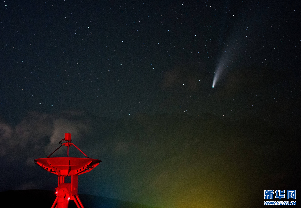 在明安图观测基地,尼欧怀兹彗星划过天际(资料图)。新华社记者 连振摄