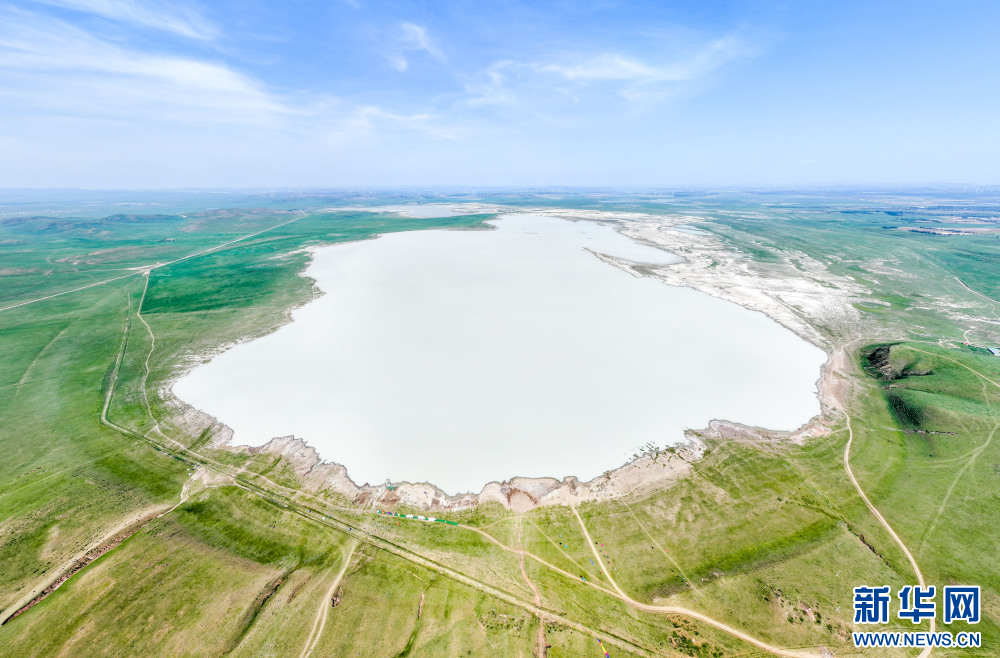 这是6月11日拍摄的白音查干湖景色(无人机照片)。新华社记者 连振 摄