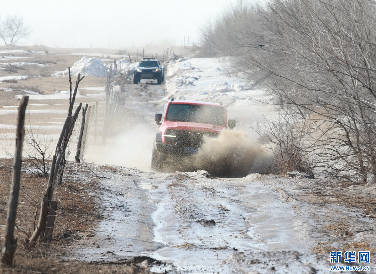 3月4日,参赛者齐聚锡林郭勒盟参加冰雪汽车拉力赛活动。新华网发