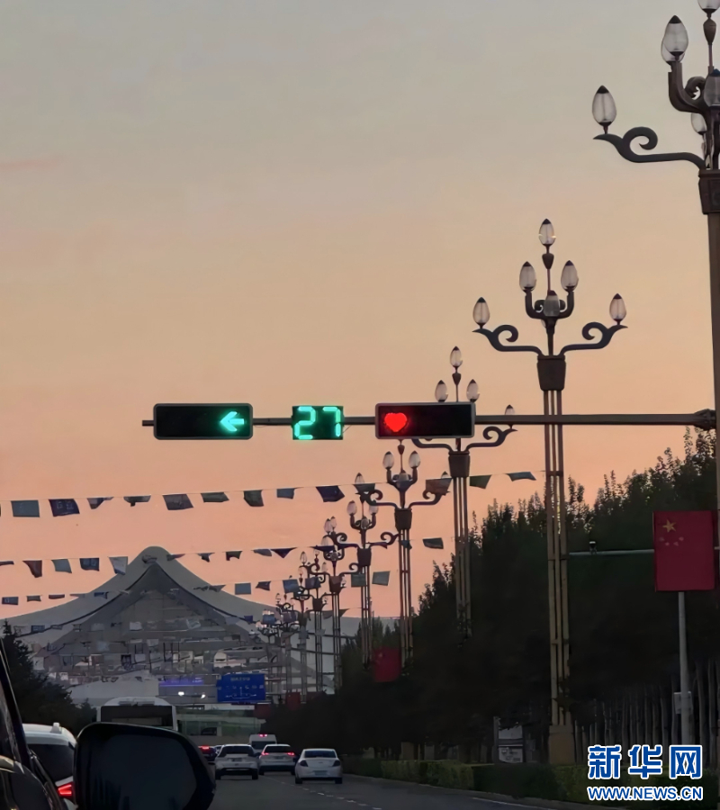 内蒙古自治区草原那达慕举办期间,锡林郭勒市多个路口设置爱心形状红绿灯,欢迎“国家的孩子”的亲人。新华网发(奔腾融媒供图)