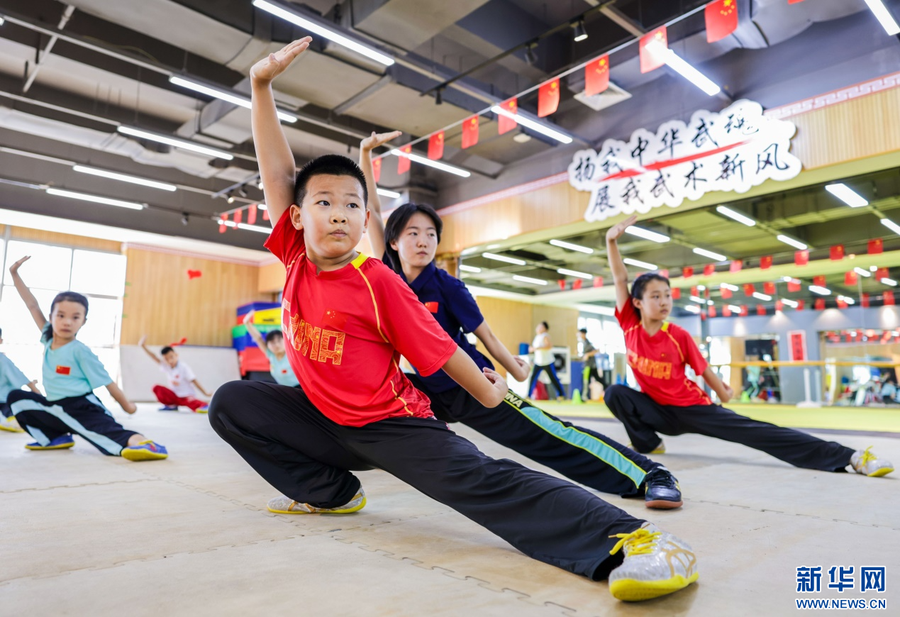 7月20日,孩子们在内蒙古呼和浩特市玉泉区青少年宫学习中华武术。新华网发(丁根厚 摄)
