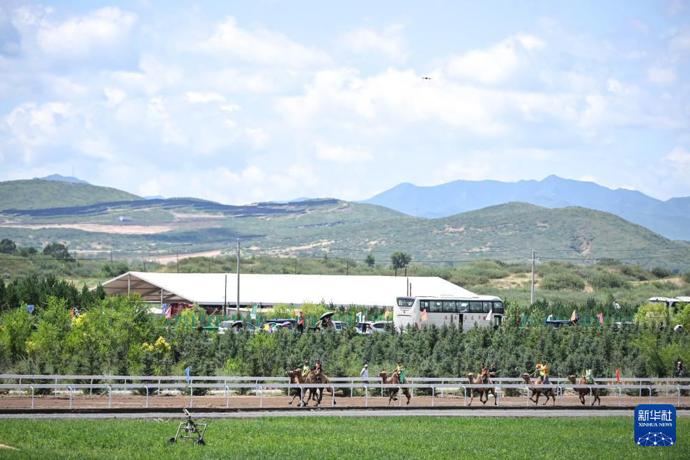 7月20日,阿拉善盟代表队骑师王小两(右一)和巴彦淖尔市代表队骑师呼吉勒图(右二)在比赛中。最终,他们获得二等奖。