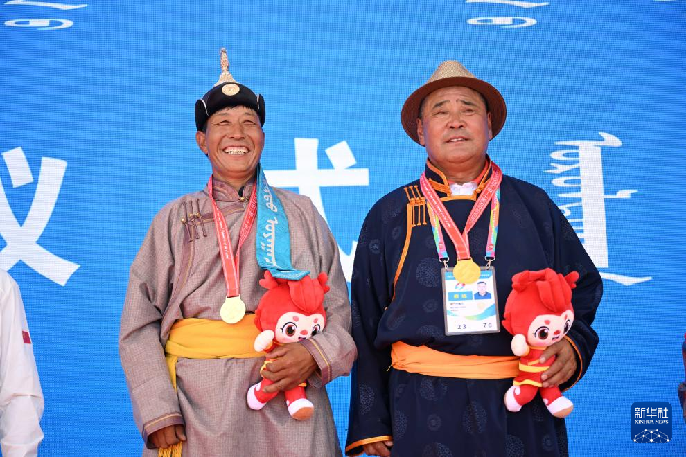 在内蒙古巴林右旗举行的内蒙古自治区少数民族传统体育运动会上,赛马、赛骆驼、驼球和男儿三艺项目正在进行。