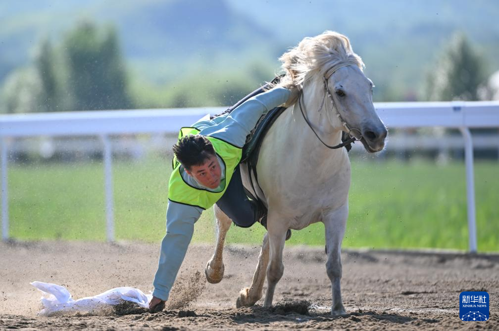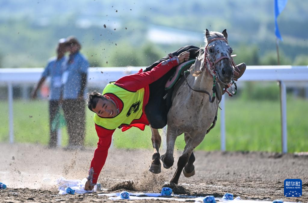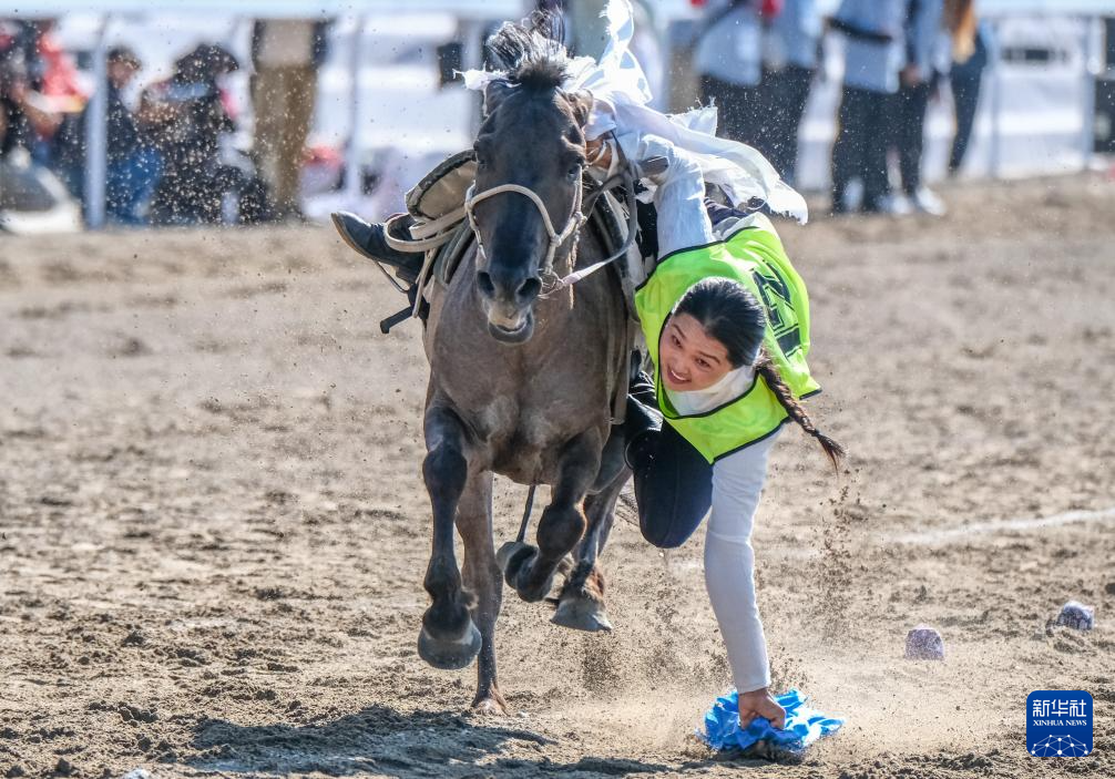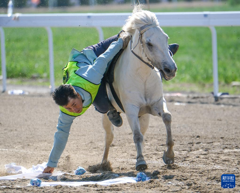 当日,内蒙古自治区第十一届少数民族传统体育运动会跑马拾哈达比赛个人赛在赤峰市巴林右旗举行。