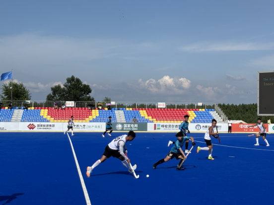 2025年呼伦贝尔(莫力达瓦)首届男子曲棍球国际邀请赛比赛现场。郑明 摄