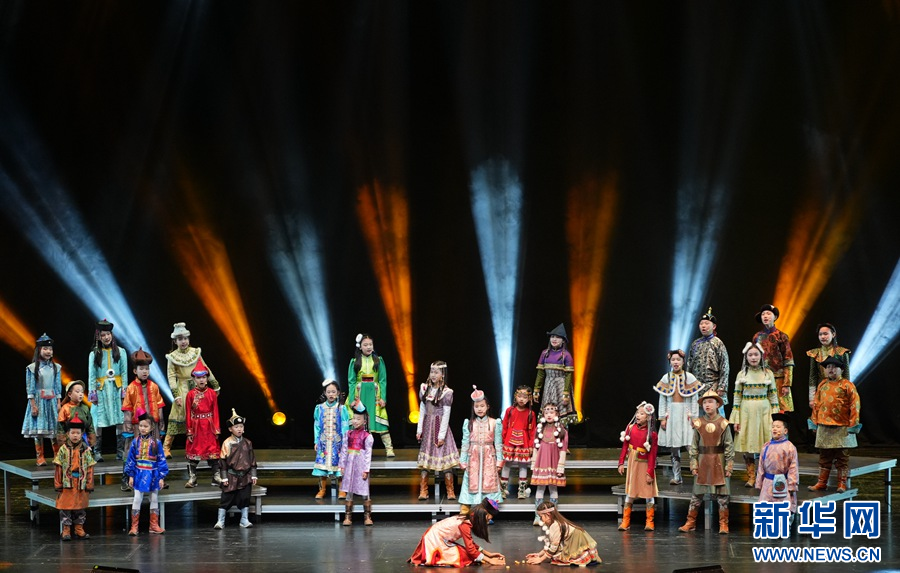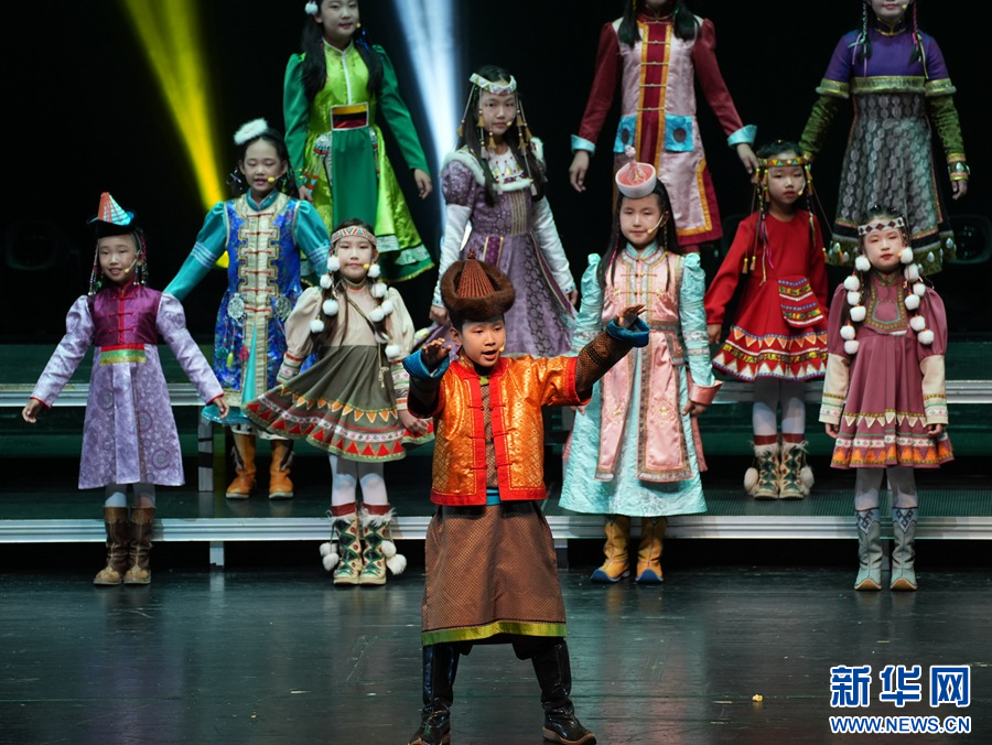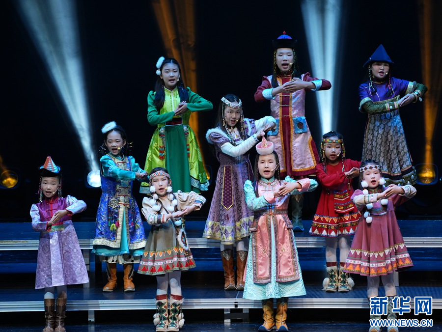 7月27日晚,呼伦贝尔五彩儿童合唱团在呼和浩特乌兰恰特大剧院演出。新华网发(赛汉 摄)