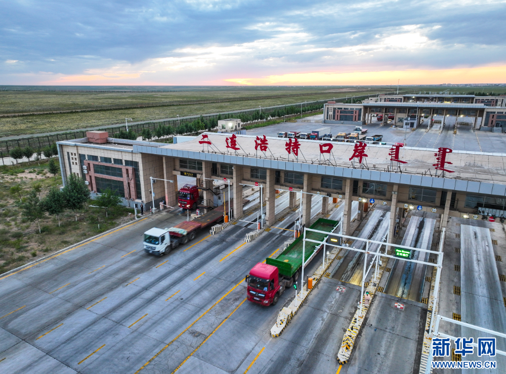 8月1日,蒙古国货运车辆从二连浩特口岸入境。(新华网发(郭鹏杰 摄)