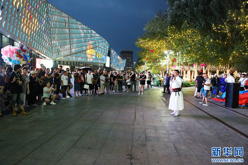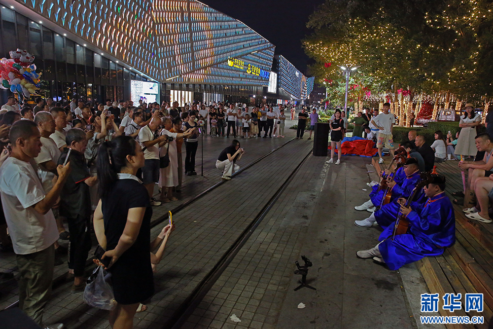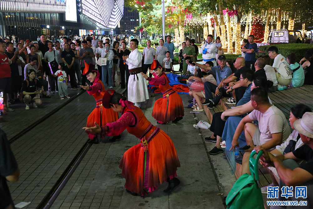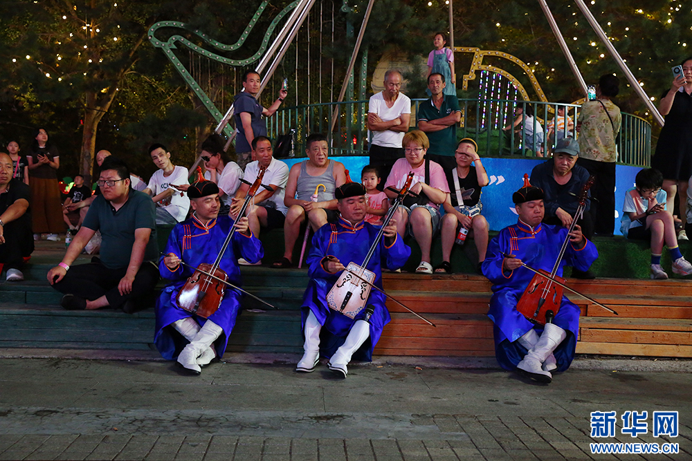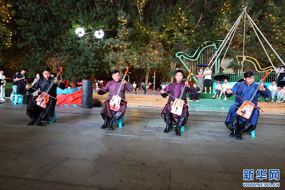 新华网呼和浩特8月3日电(石毅)8月2日晚,夜幕下的哈尔滨哈西万达广场热闹非凡,来自内蒙古自治区通辽市科尔沁左翼后旗、锡林郭勒盟太仆寺旗、乌兰察布市察哈尔右翼后旗、凉城县的乌兰牧骑队为哈尔滨市民奉献了一场“歌游内蒙古”主题文艺快闪秀。