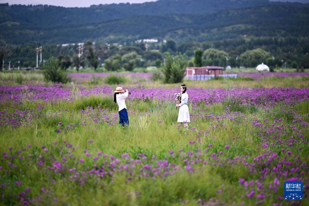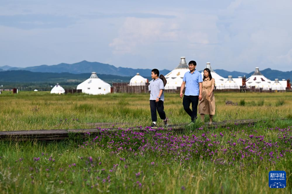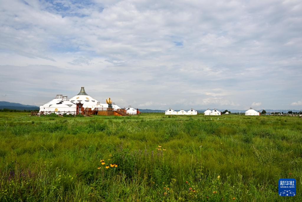 夏日,内蒙古呼和浩特市敕勒川草原景色宜人,吸引游客前来观光游玩。