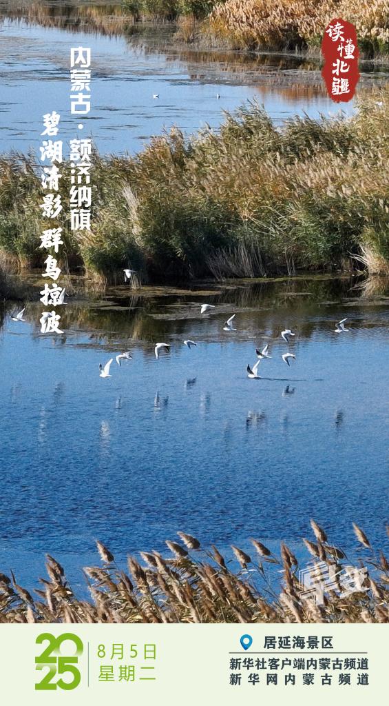 读懂北疆丨2025年8月5日 碧湖清影 群鸟掠波 内蒙古额济纳旗- 新华网内蒙古频道