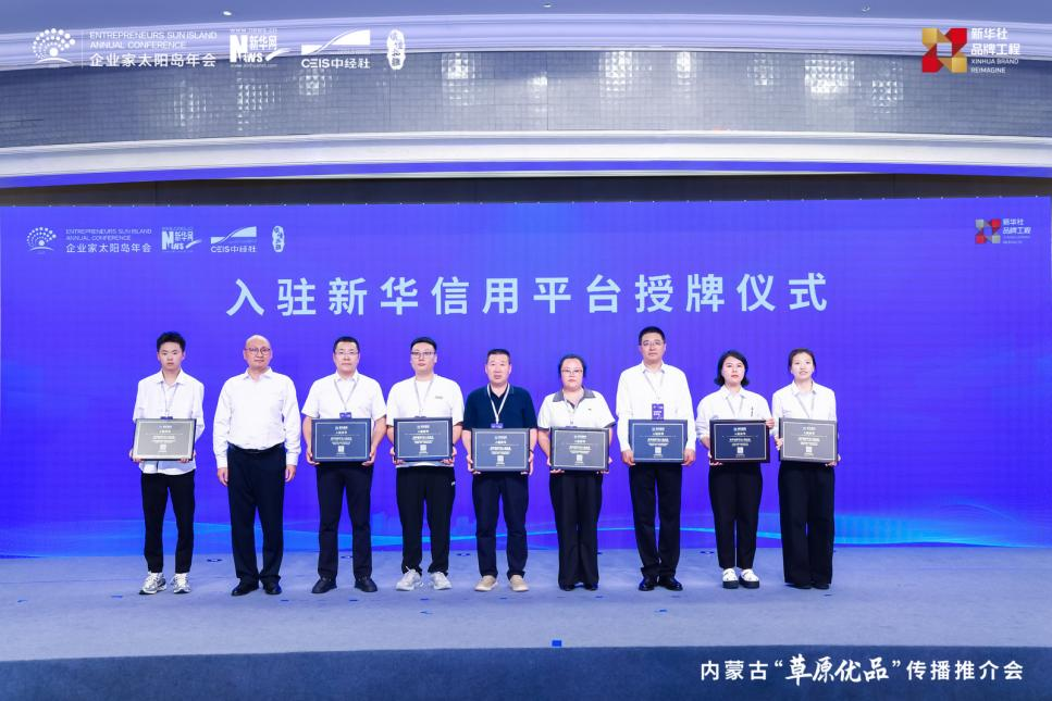 在入驻新华信用平台授牌仪式上,东乌珠穆沁旗吉祥草原食品有限公司、蒙源肉业有限公司两家企业负责人作为该旗企业代表上台接受授牌。据了解,此次推介会东乌珠穆沁旗共有9家企业成功入驻新华信用平台,其中6家企业同时入驻“新华信用优品馆”电商矩阵,为“草原优品”信用建设树立典范。