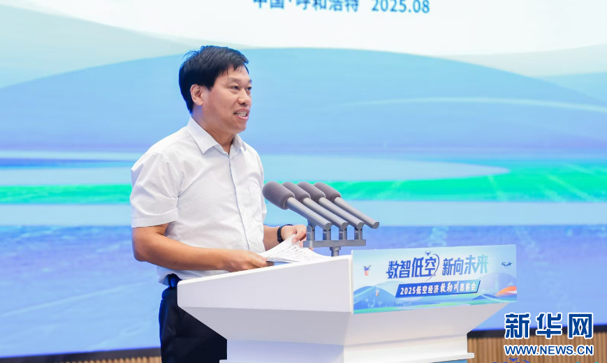 8月8日,内蒙古工业大学党委副书记赵增武在2025低空经济敕勒川思客会上致辞。新华网发