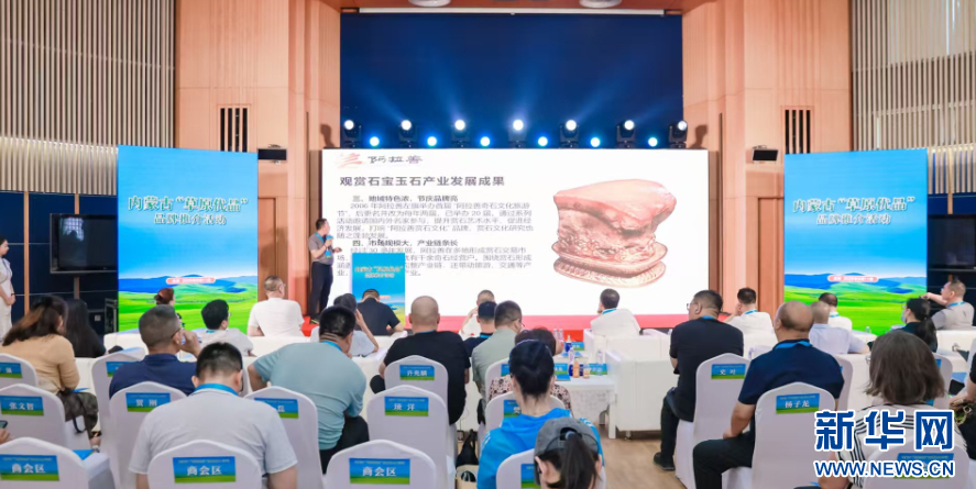 新华网呼和浩特8月11日电(徐红梅)11日,内蒙古“草原优品”品牌推介活动在北京举行,阿拉善盟特色产业发展中心携特色观赏石、沙产业产品、驼制品等亮相。