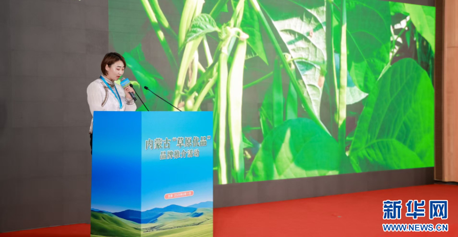 新华网呼和浩特8月11日电(徐红梅)11日在北京举行的内蒙古“草原优品”品牌推介活动上,内蒙古乌兰察布市兴和县农推官李莎莎推介了兴和县特色农畜产品。