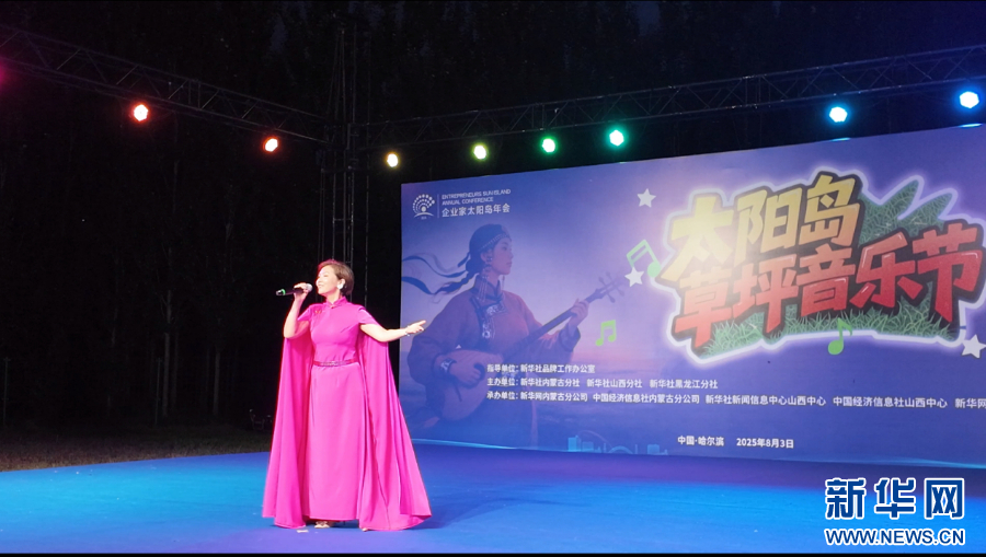 太阳岛草坪音乐节现场,歌手演唱《请到内蒙古来》。新华网发(王伟 摄)