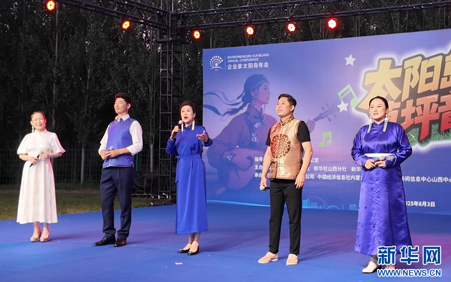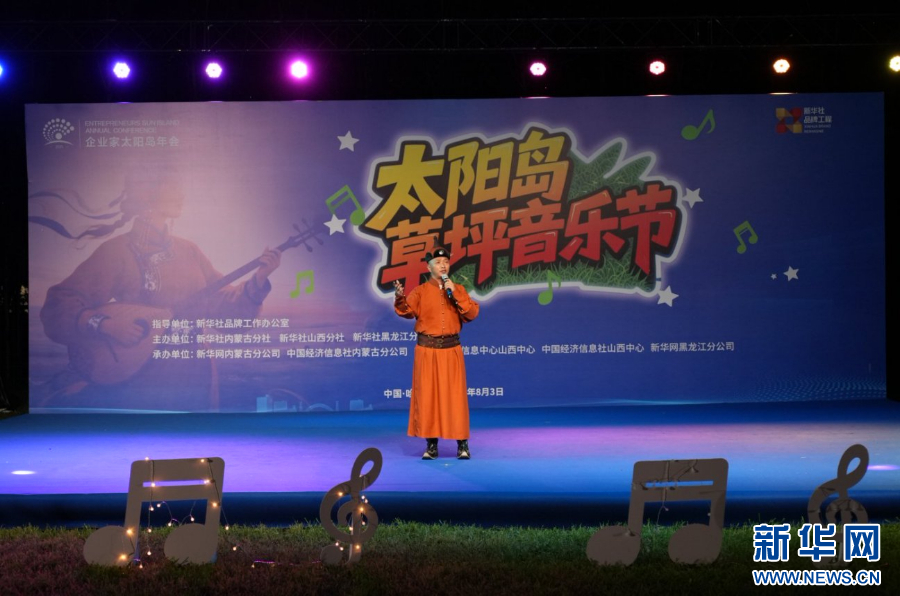 太阳岛草坪音乐节现场,歌手哈斯额日德尼演唱《锡林河》。新华网发(王伟 摄)