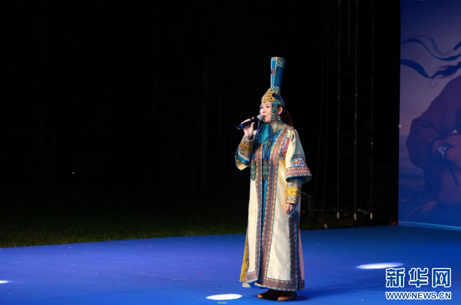 太阳岛草坪音乐节现场,乌兰察布市凉城县乌兰牧骑队员苏勒亚其其格演唱《歌游内蒙古》。新华网发(赵嘉伟 摄)