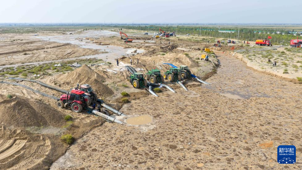 这是8月18日在内蒙古巴彦淖尔市乌拉特后旗乌盖苏木拍摄的搜救现场。