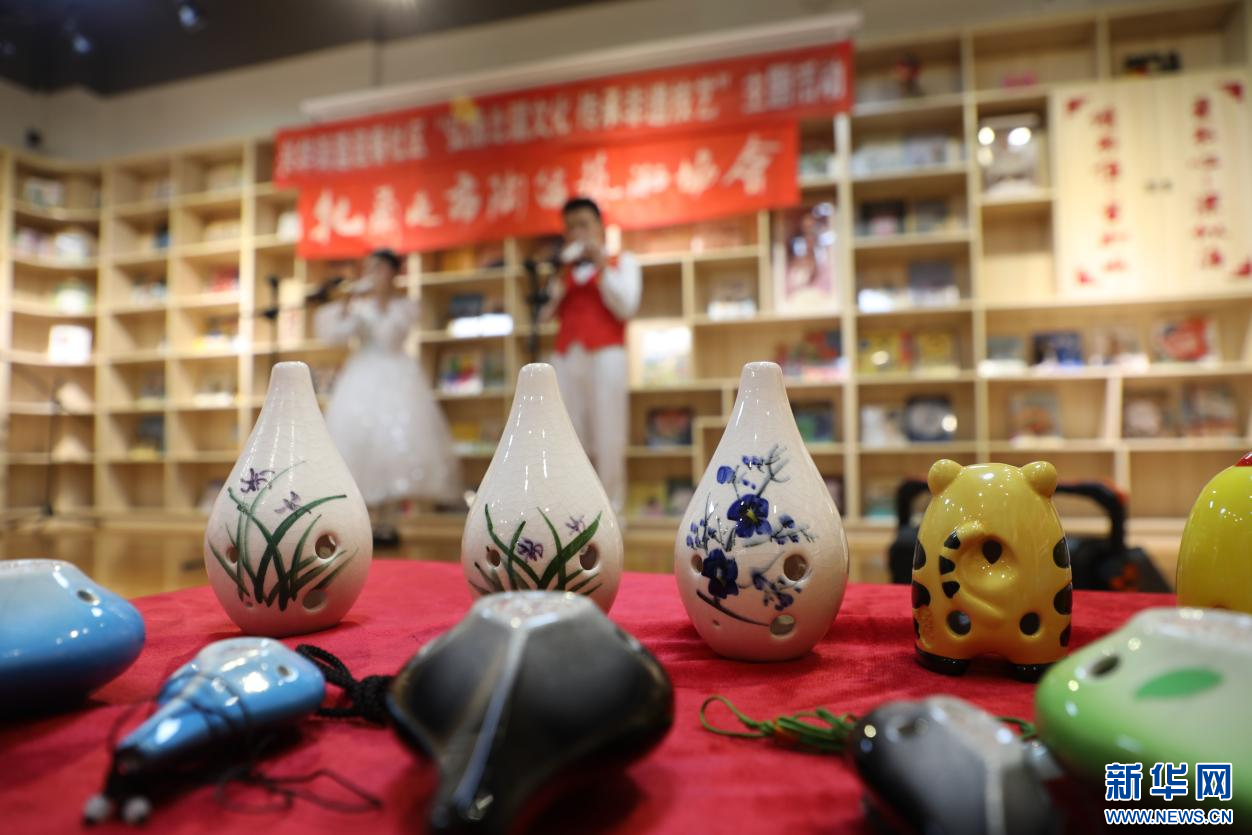 8月19日,在内蒙古扎兰屯市新华书店活动室,学生们进行陶笛演奏展演。新华网发(韩颖群 摄)