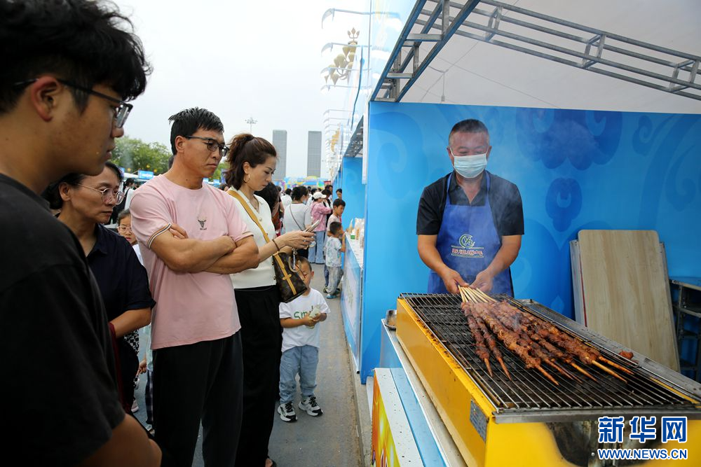 8月22日,在美味暖城·鄂尔多斯首届美食文化周活动现场,市民购买特色美食。新华网 石毅 摄