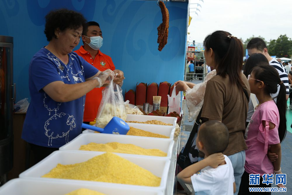 8月22日,在美味暖城·鄂尔多斯首届美食文化周活动现场,市民购买特色农产品。新华网 石毅 摄