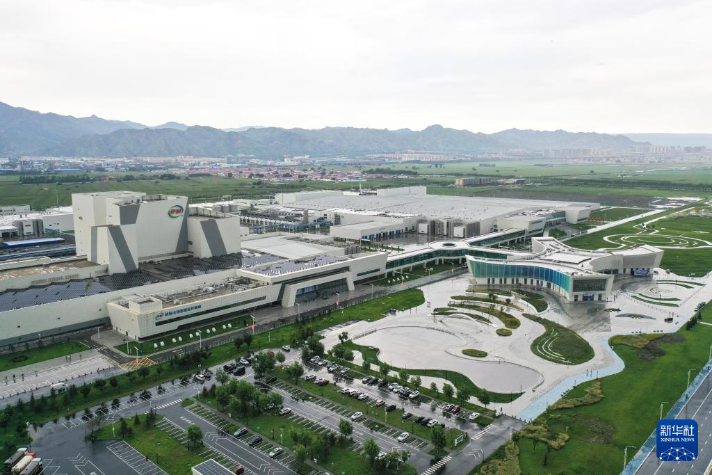 空中俯瞰呼和浩特市伊利现代智慧健康谷,伊利液态奶全球智造标杆基地等工厂坐落于此(7月28日摄,无人机照片)。