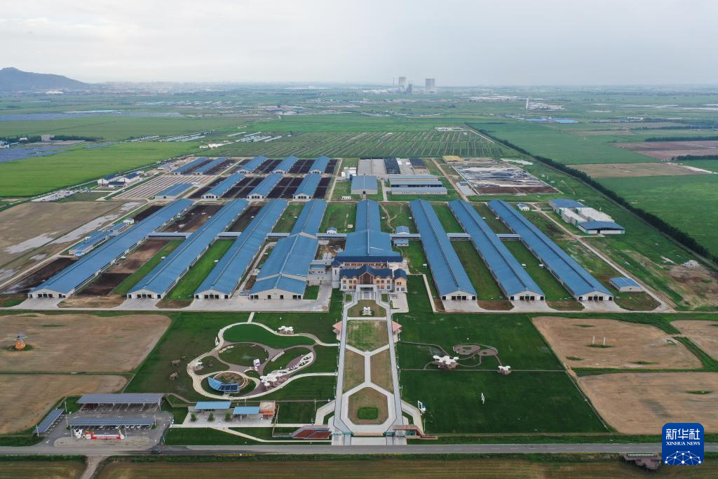 呼和浩特市伊利敕勒川生态智慧牧场(7月28日摄,无人机照片)。