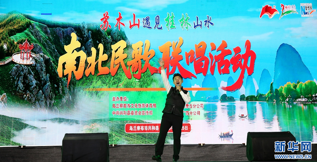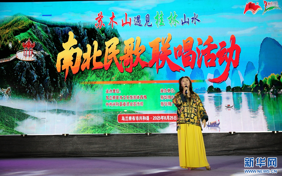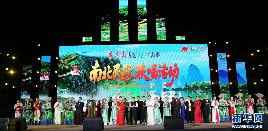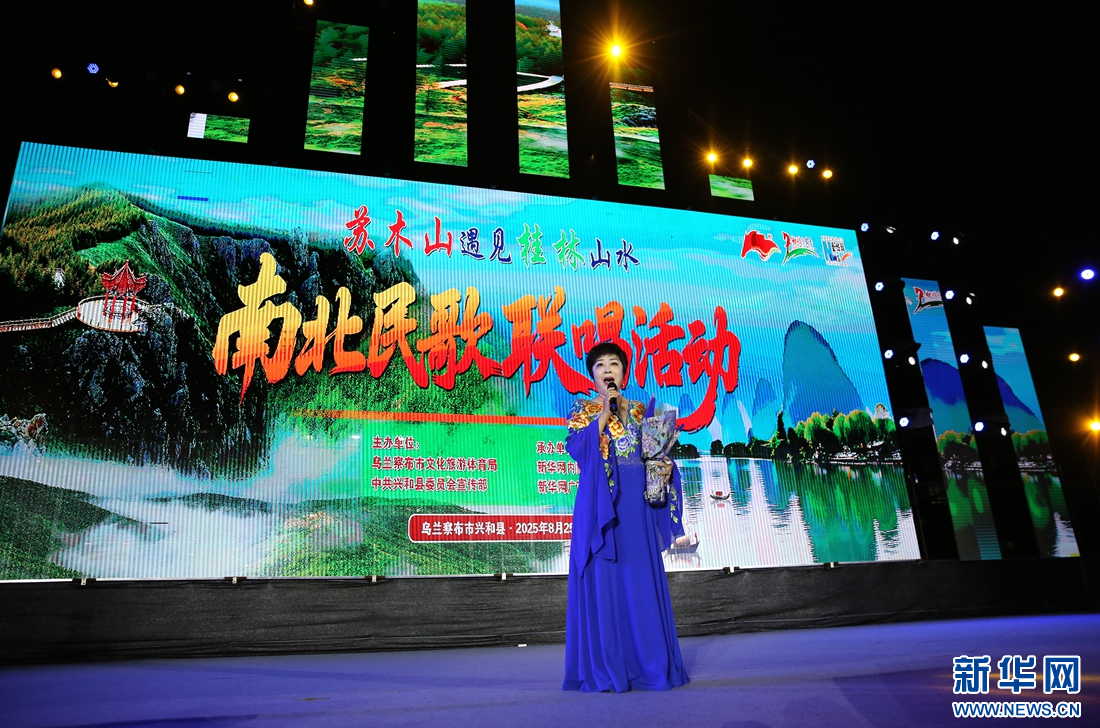 8月25日晚,“苏木山遇见桂林山水”南北民歌联唱活动在内蒙古兴和县体育场举行,来自广西、内蒙古两地的歌手和艺术团体联袂带来一场视听盛宴。
