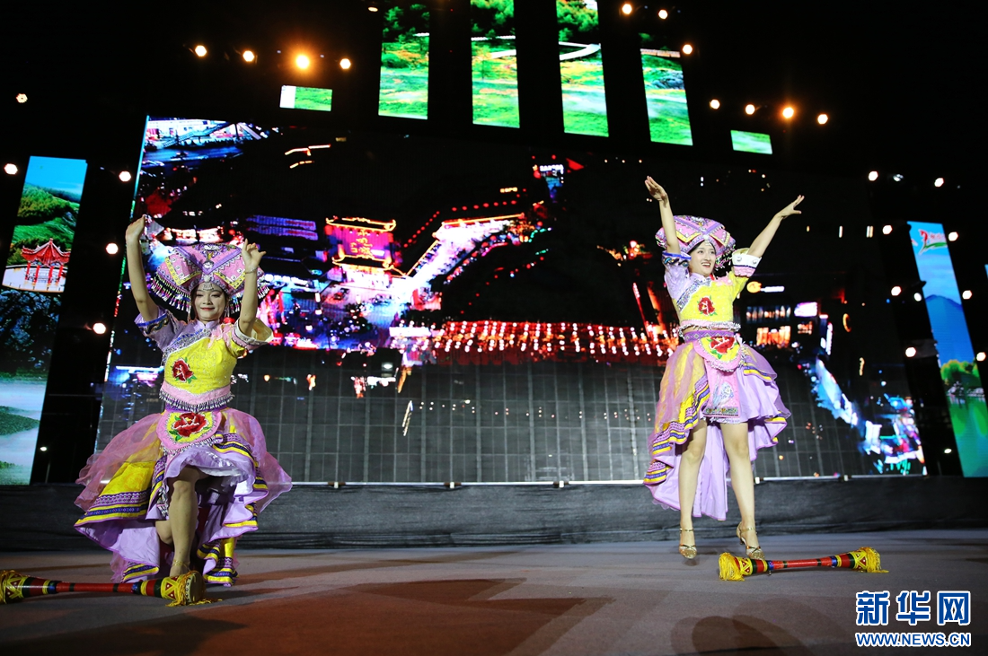桂林俏动组合表演《壮乡欢歌》。新华网 杨腾格尔摄