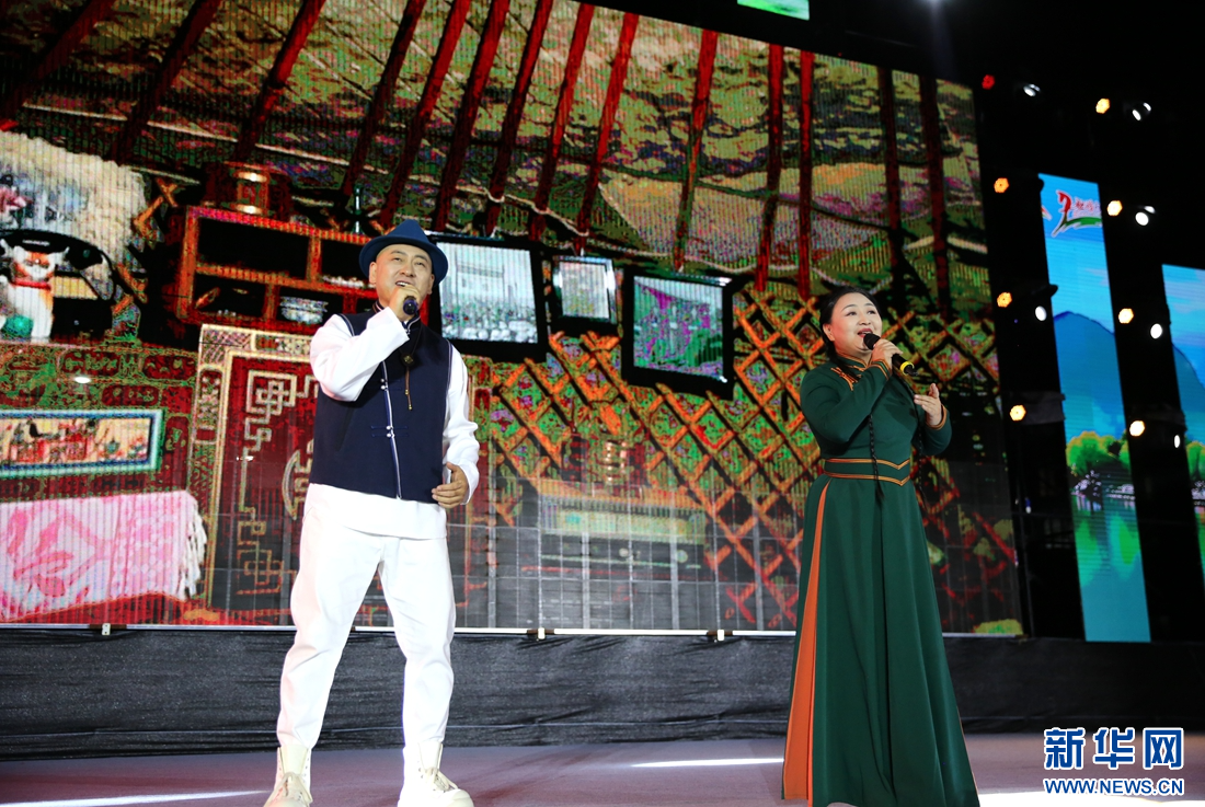 纳娋组合和通辽市乌兰牧骑、兴和县乌兰牧骑演员演唱《南北欢歌》。新华网发