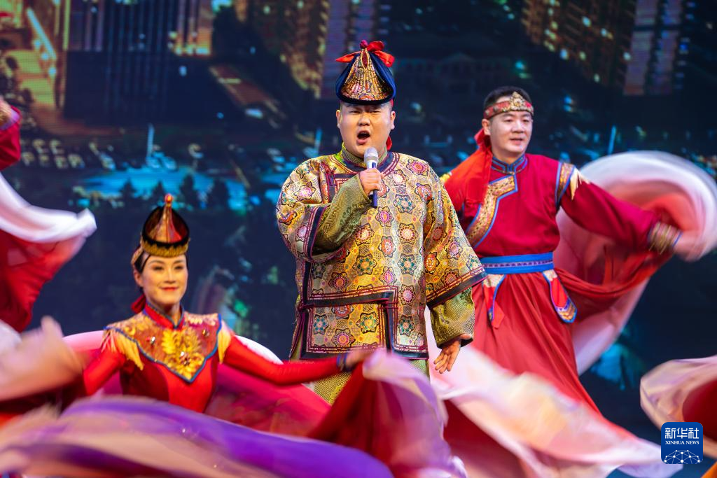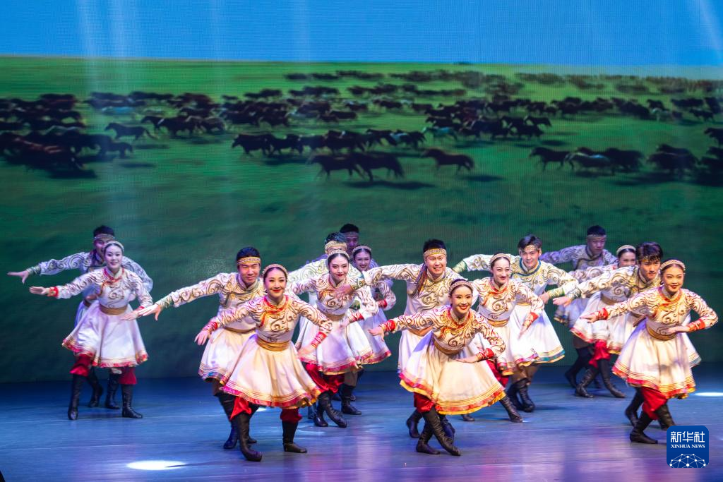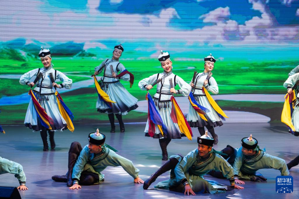 8月26日,在湖南省文化馆群星剧场,内蒙古自治区直属乌兰牧骑演员表演群舞《幸福的节拍舞起来》。