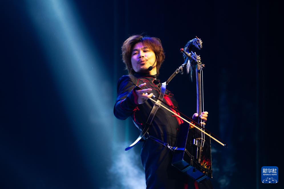 8月26日,在湖南省文化馆群星剧场,包头市艺术剧院演员演奏马头琴。