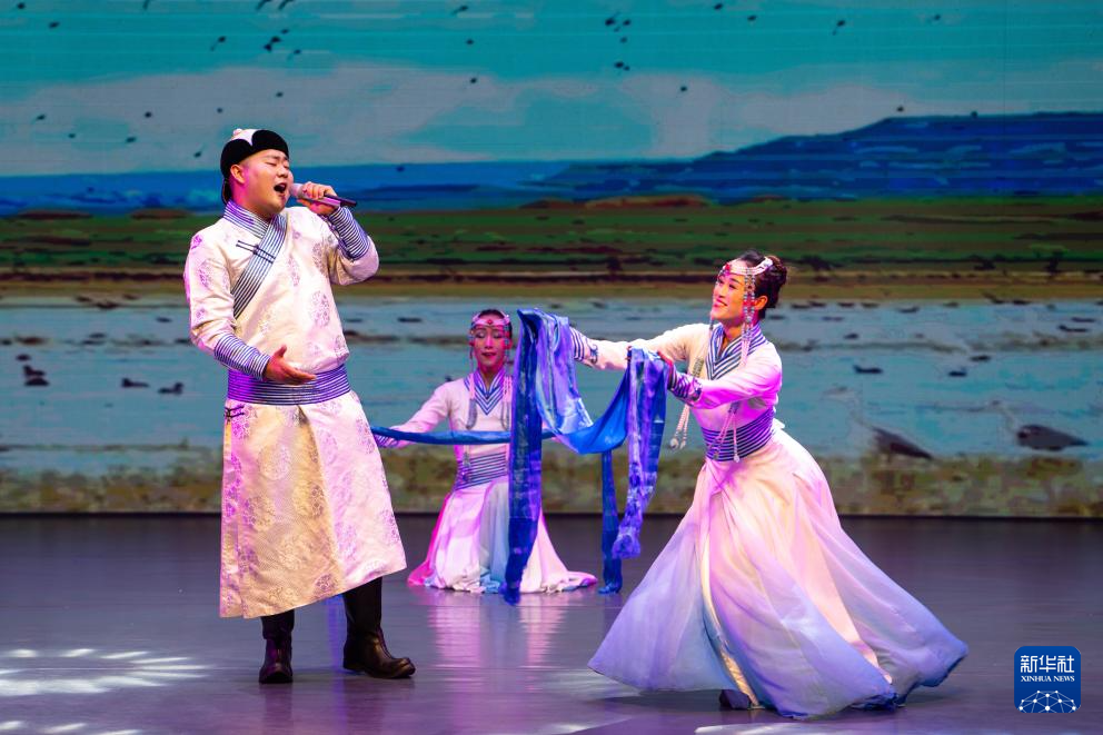 8月26日,在湖南省文化馆群星剧场,包头市艺术剧院演员表演《草原晨曲》。