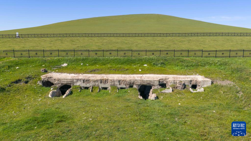 这是8月26日拍摄的巴彦汗日本关东军毒气实验场一处半地下工事遗址(无人机照片)。新华社记者 马金瑞 摄