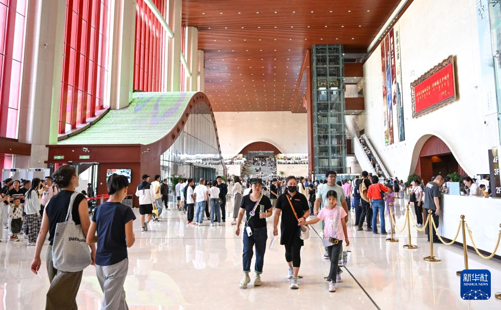 7月30日,游客在内蒙古呼和浩特市内蒙古博物院新馆参观。内蒙古博物院新馆作为内蒙古自治区文化新地标,暑期持续升温,展馆内游人络绎不绝。新华社记者 贝赫摄