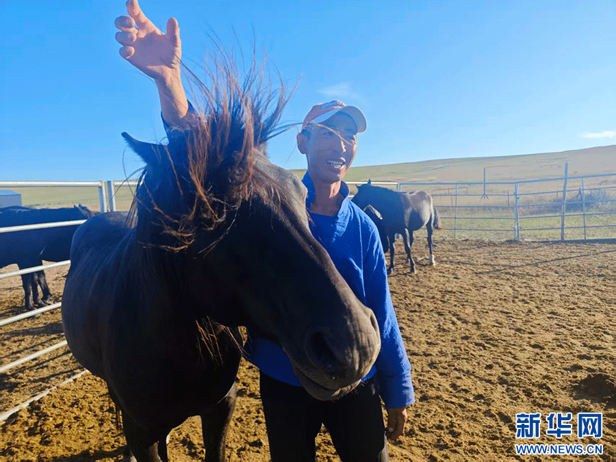 牧民呼伦青格力和他的黑马。新华网 徐红梅摄
