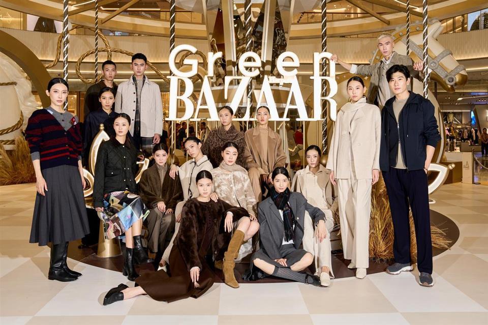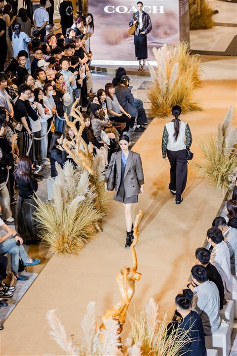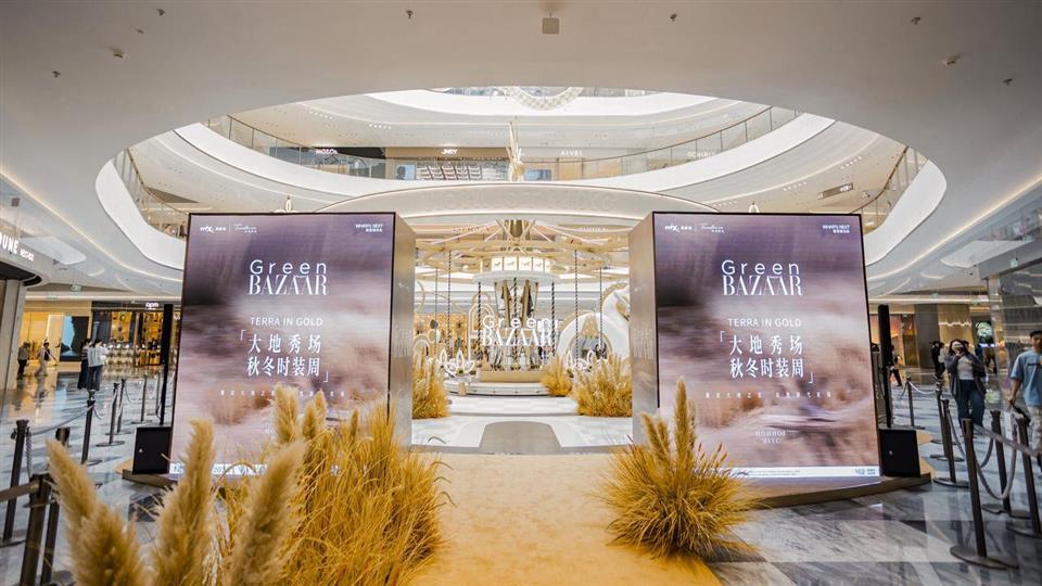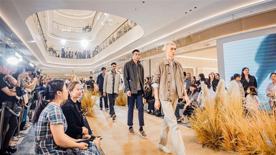 本次大秀由呼和浩特万象城与Green BAZAAR联合打造,以“大地”为灵感线索,将自然美学与都市风尚巧妙融合。整个秀场布置以暖色调植物元素和流线型步道引导视觉,结合艺术装置,营造出沉浸式的观看体验。不仅如此,大秀更分为“大地鎏金”“野趣潮动”“秋壤织影”三大篇章,从奢华雅致到户外机能,从柔美针织到都市剪影,全面呈现多元风格与在地文化融合的新趋势。