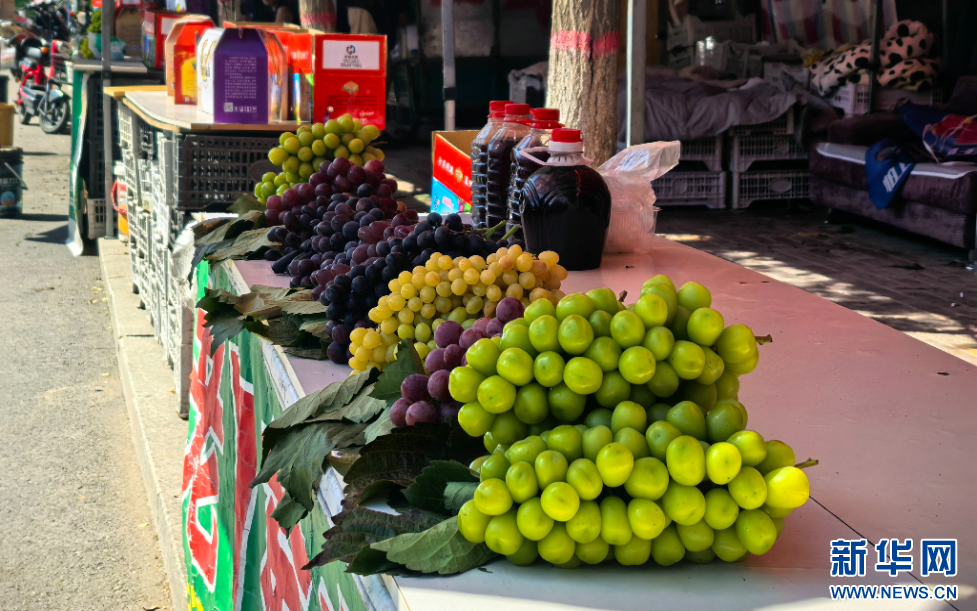乌海市海勃湾区葡萄街销售的各类葡萄。新华网 郝芳芳摄