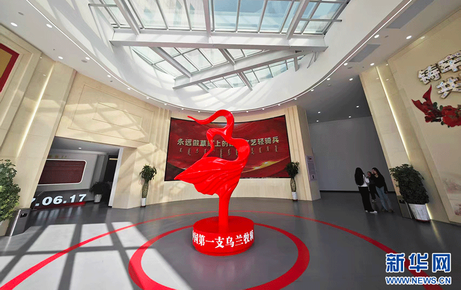 苏尼特右旗乌兰牧骑展馆内展示的“乌兰牧骑”精神雕塑。新华网 徐红梅摄