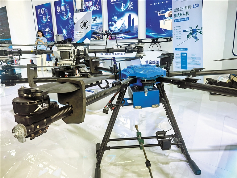 在第五届中蒙博览会上,内蒙古羿航科技有限公司展出自主研发的清洁无人机。 记者 康丽娜 摄