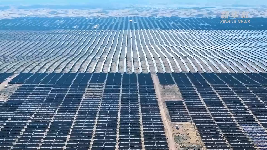 但如今,沙海披绿装,“蓝海”般的光伏中,板上能发电,板下能种植。