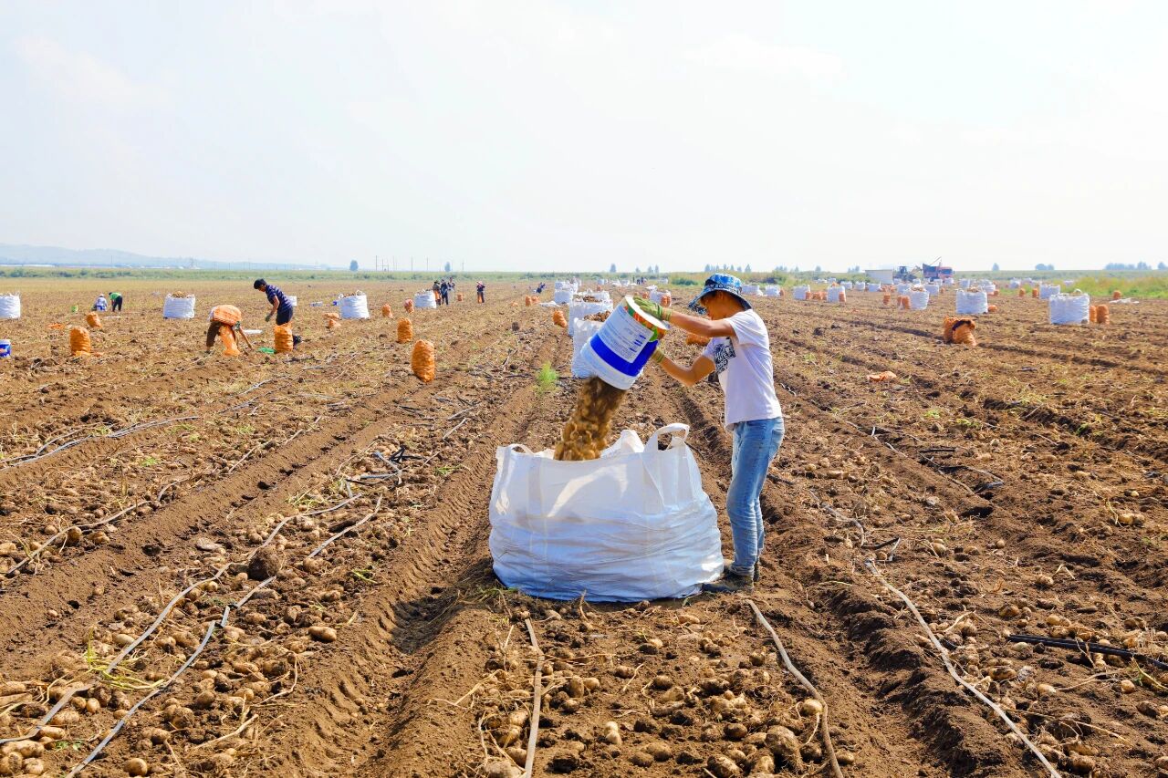 走进马莲渠乡大十号村,连片的马铃薯一眼望不到边,伴随着机械的轰鸣声,马铃薯收获机来回穿梭,一垄垄饱满圆润的马铃薯被翻出土地。工人们将其分拣、装袋、装车,整个过程井然有序。
